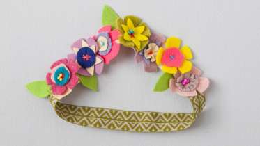 This pretty and sweet adornment adds a midsummer night's feel to any season. Working with felt in bright color combinations creates a wearable bouquet of plush happiness – but you can equally create a bracelet, garlands, or decorate the edge of a lampshade. Beads add texture to the bohemian feel of this project.