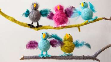 These charming birdies are made from extra-fuzzy yarn, feathers, and your child’s imagination. Nicole and her daughter show you how to create them, along with a yarn-wrapped branch. So these little guys can perch anywhere that will benefit from some fuzzy cuteness.
