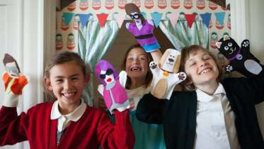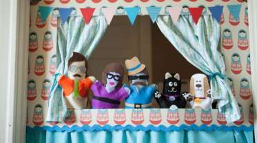 Amelia’s homemade puppet stage will inspire creativity and giggles from kids of all ages. Lightweight and easy to custom-fit for any doorway, the stage is decorated with cheery curtains, paper, and pennant flags. Perfect for showcasing pint-size playwrights. To make your very own puppets, check out Amelia's Felt Puppet Avatars class here on Creativebug.