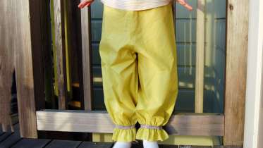 These sweet girl’s bloomers are designed to wear under a skirt, dress or tunic, making them a great alternative to ordinary tights or pants. Upcycle them from one of Dad’s roomy t-shirts or use a colorful lightweight fabric, and finish them with elastic and a quick zigzag stitch.