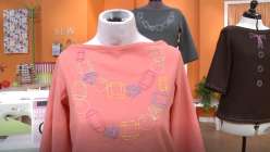 Learn the basic embroidery stitches every sewist should know and how to transfer embroidery designs. Combine those stitches to embellish a boatneck top with an fabulous gemstone design.
